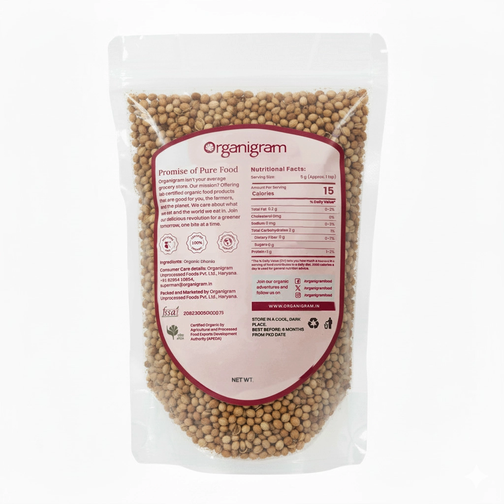Item Form: Organic Dhania / Coriander Seeds (Whole)