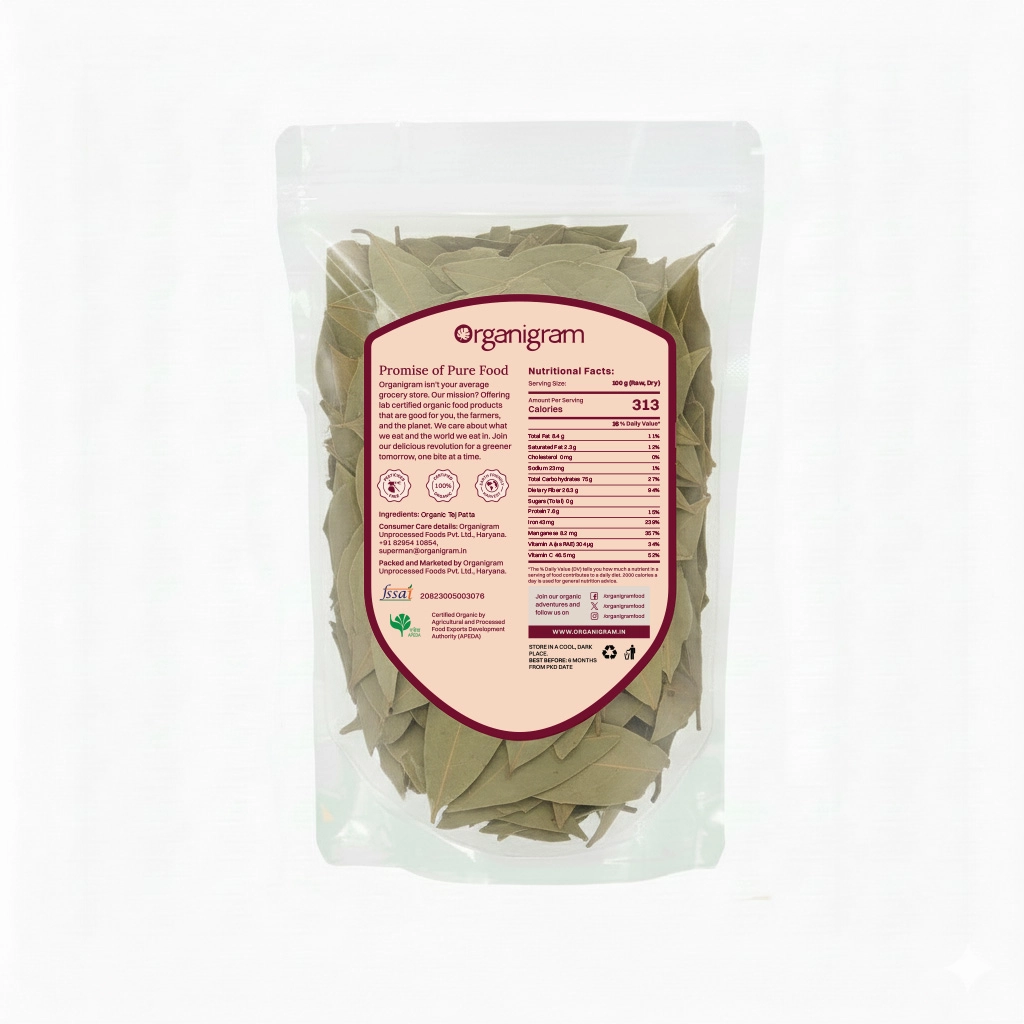 Organigram Organic Tej Patta (Whole Bay Leaves) is the aromatic soul of authentic Indian cuisine. Sourced from certified organic farms, these leaves are hand-selected and naturally dried to preserve their essential oils, ensuring they release a rich, earthy fragrance the moment they hit the hot oil. Perfect for tempering (tadka), biryanis, and curries, they add a layer of subtle complexity to every dish.